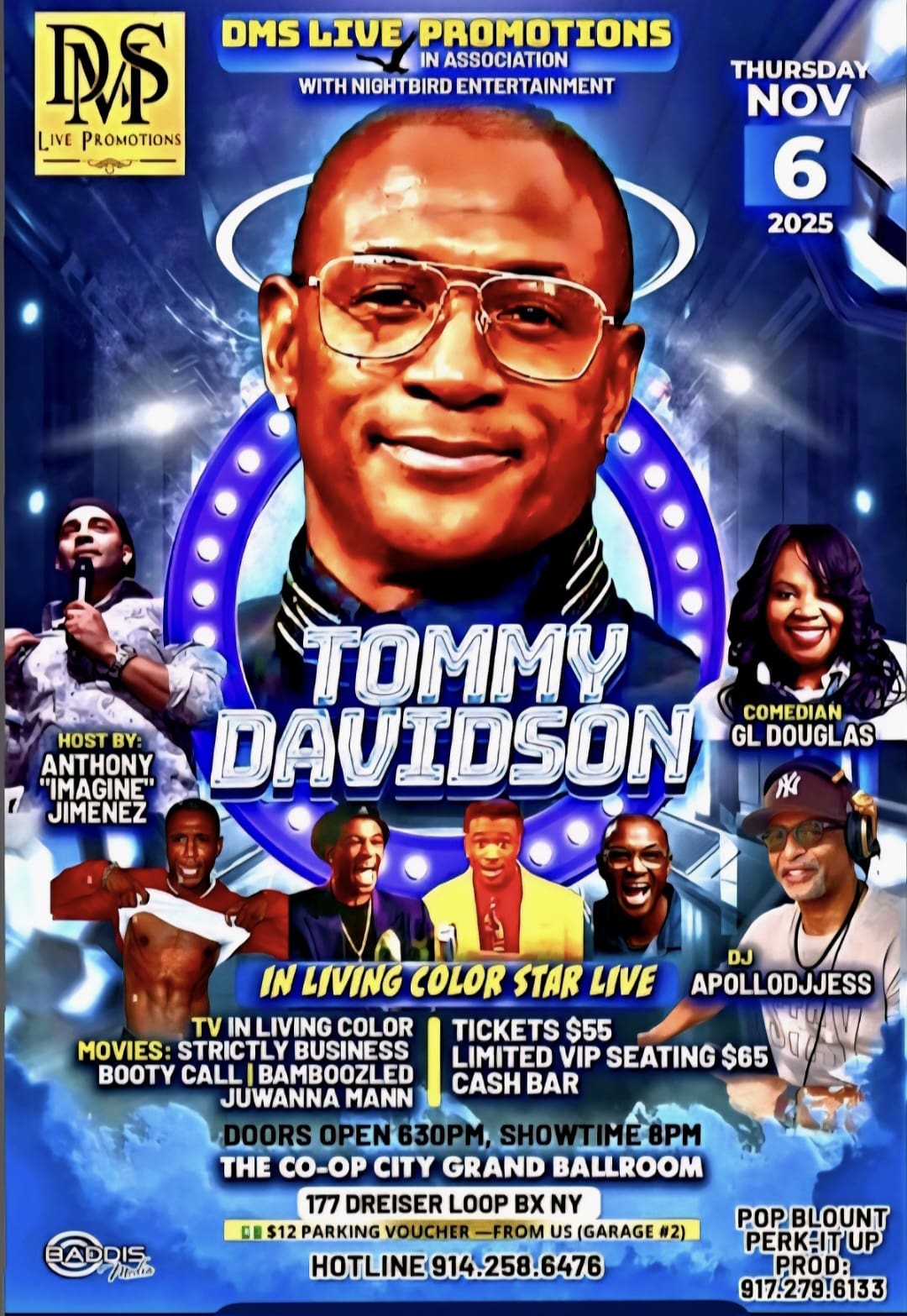 One night only featuring the hilarious comedy of Tommy Davidson from the hit tv series In Living Color.